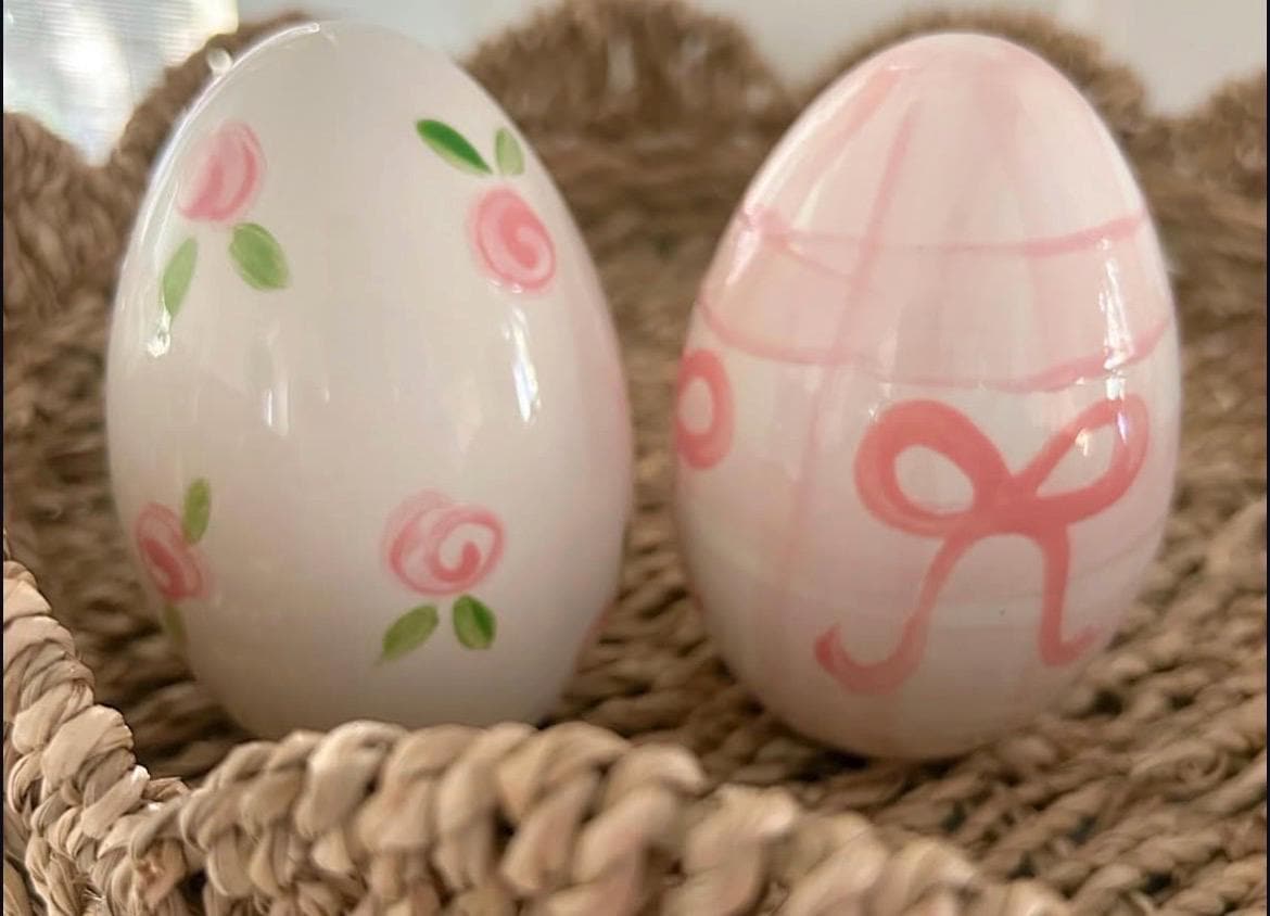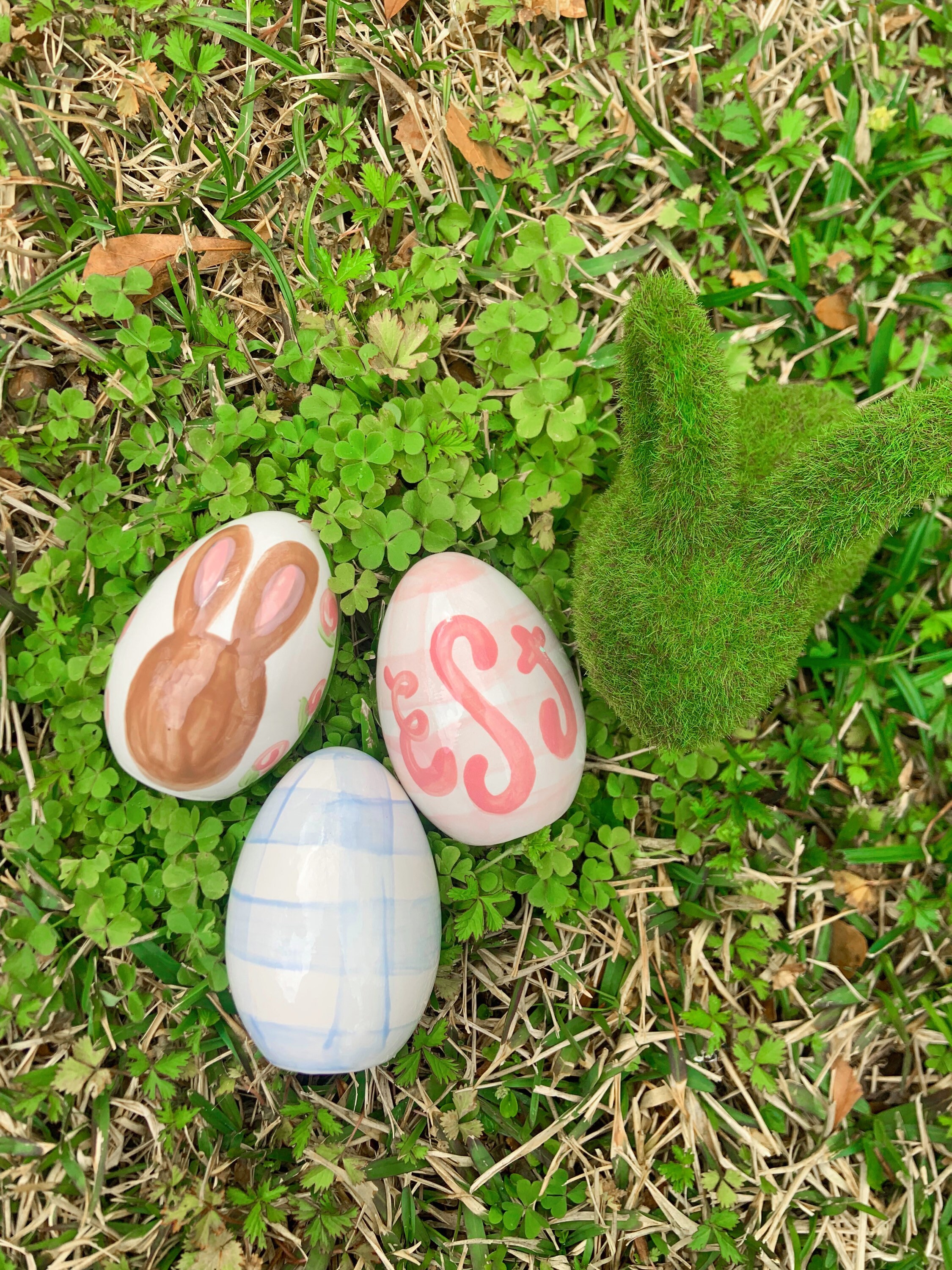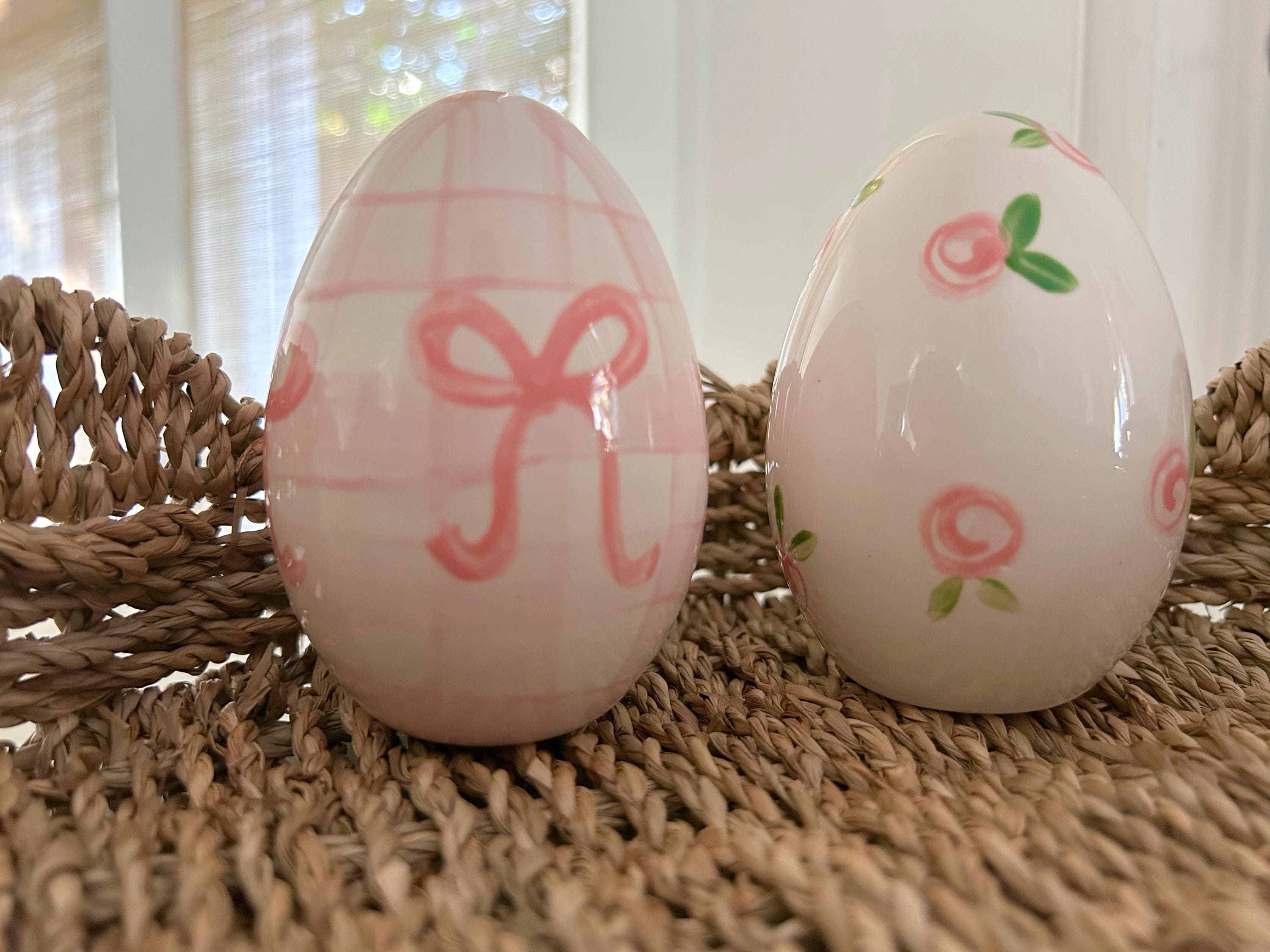 Choose from blue gingham, pink gingham, pink bows, pink roses or brown bunny with roses