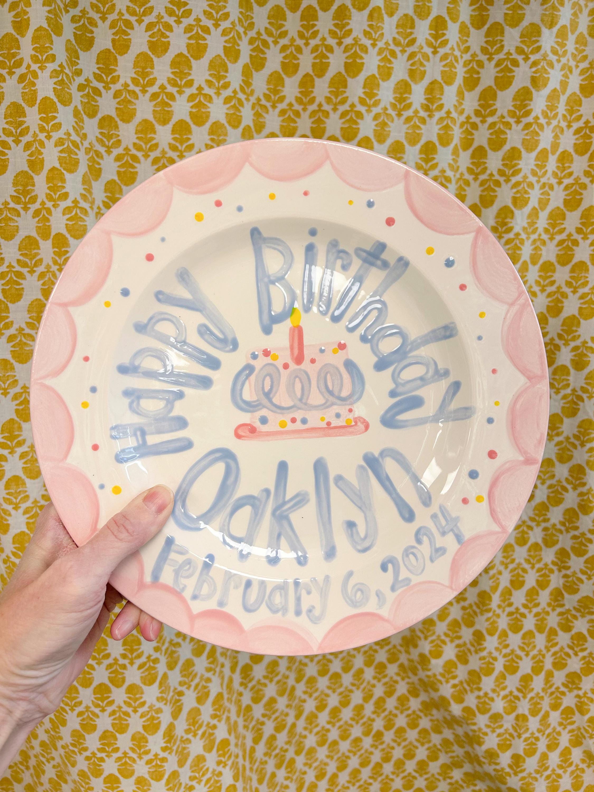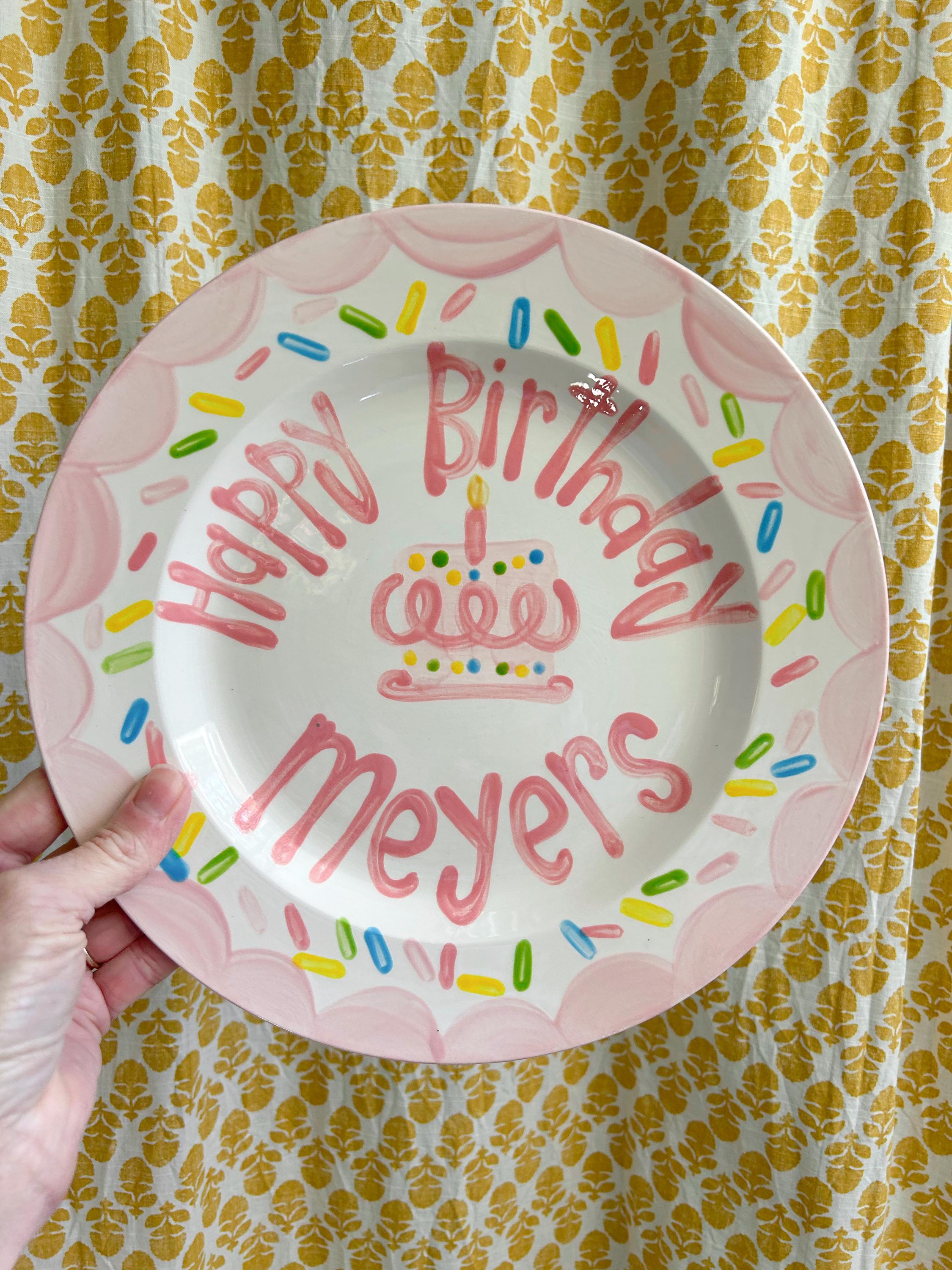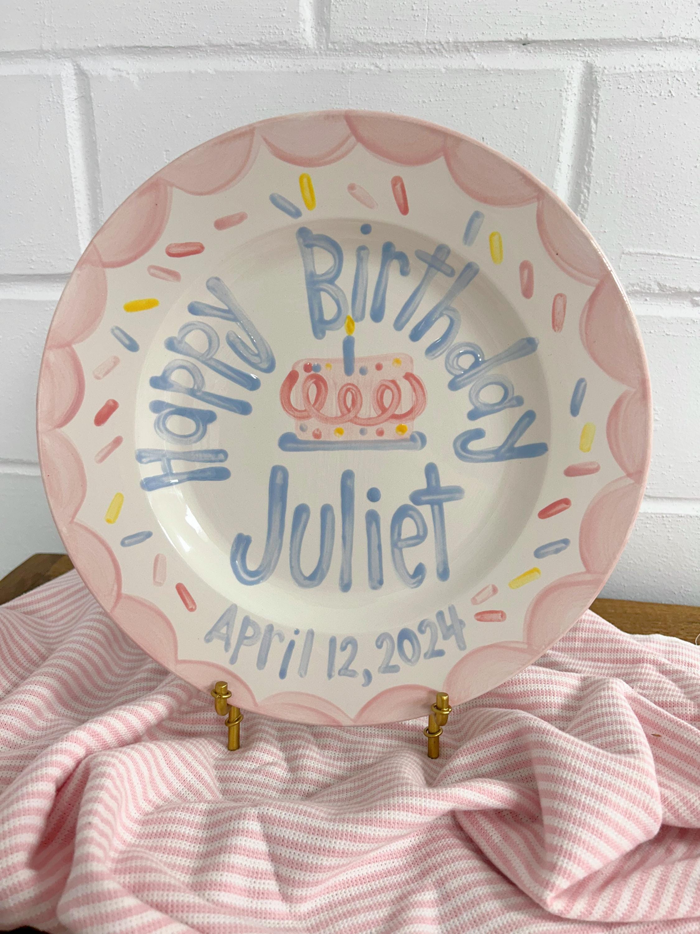 I'll custom paint your whimsical Happy Birthday plate to your specifications, with your child's name -- I can even work with you to match the party's theme!