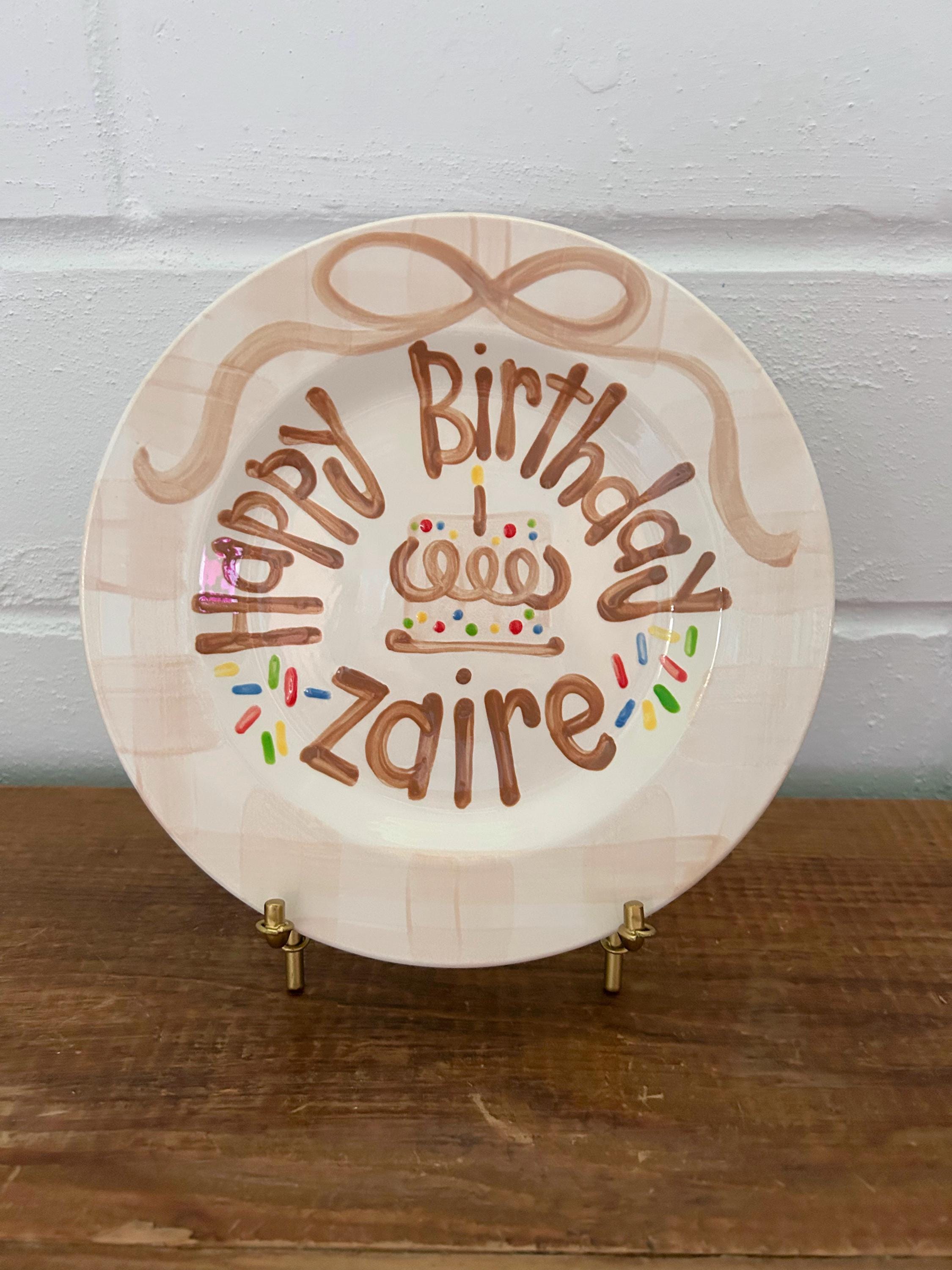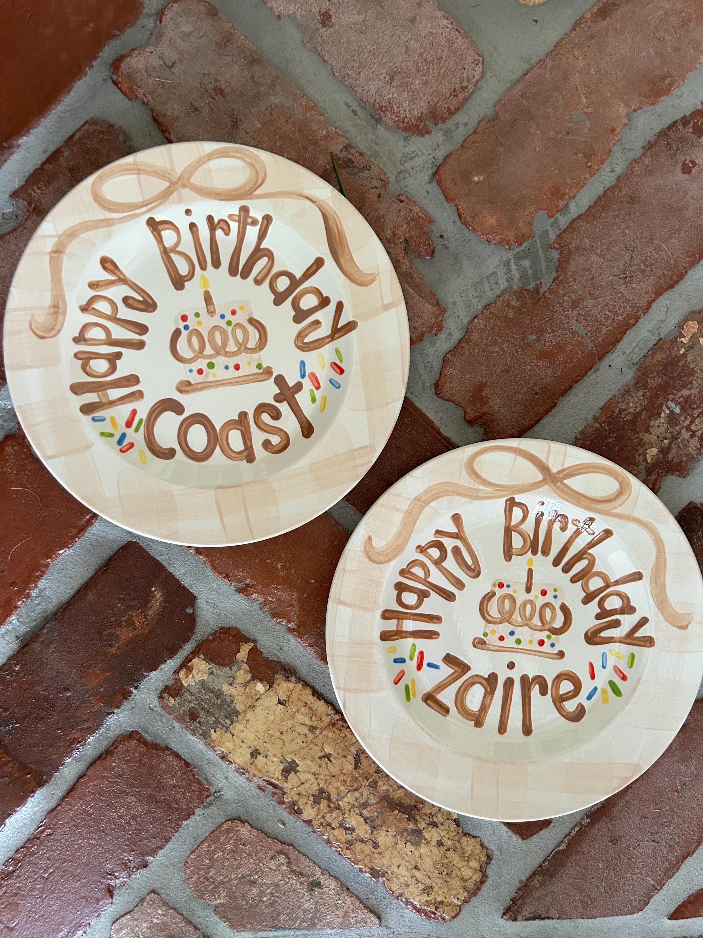 A custom gingham preppy plate makes the perfect First Birthday gift!