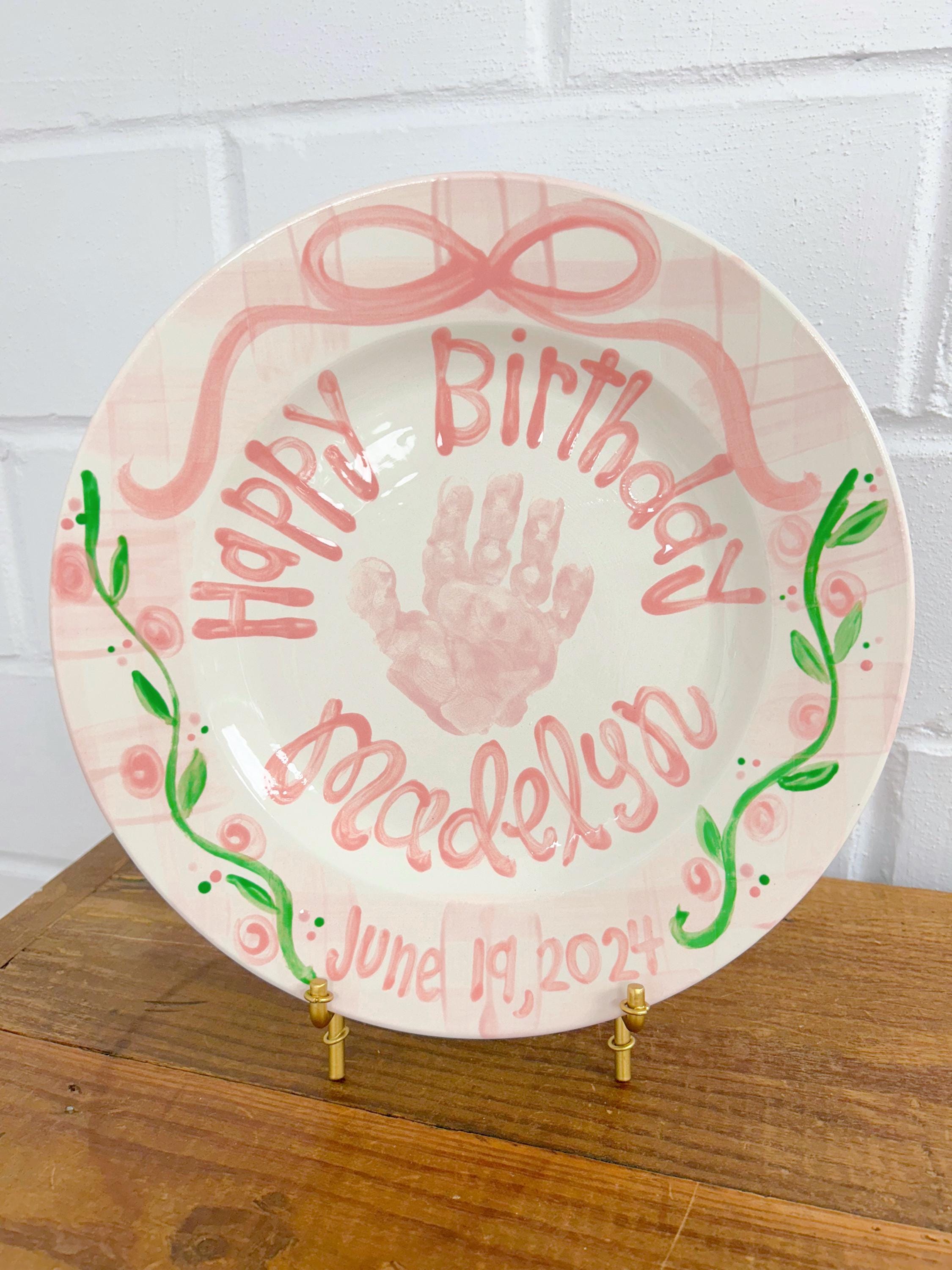 A custom handprint plate makes the perfect First Birthday keepsake and special gift to use every year!