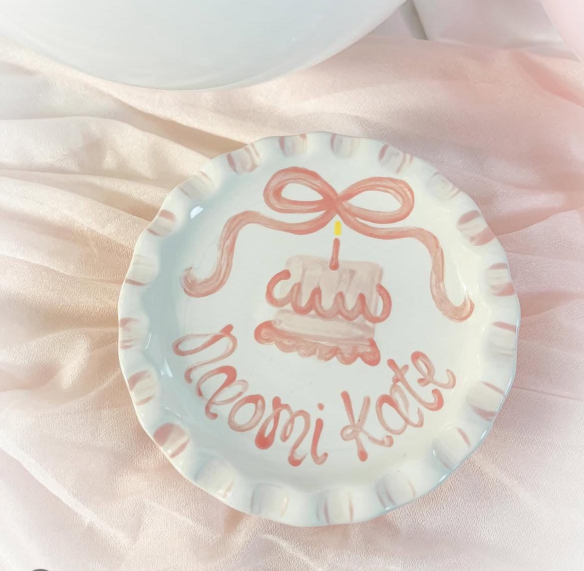 Heirloom quality ceramic kiln-fired birthday plates, tea sets, tea cups & more! All hand-painted, glazed, and kiln fired using professional, non-toxic, lead-free, food-safe paint and glaze, (not craft paints), packed & shipped in my home ceramics studio.