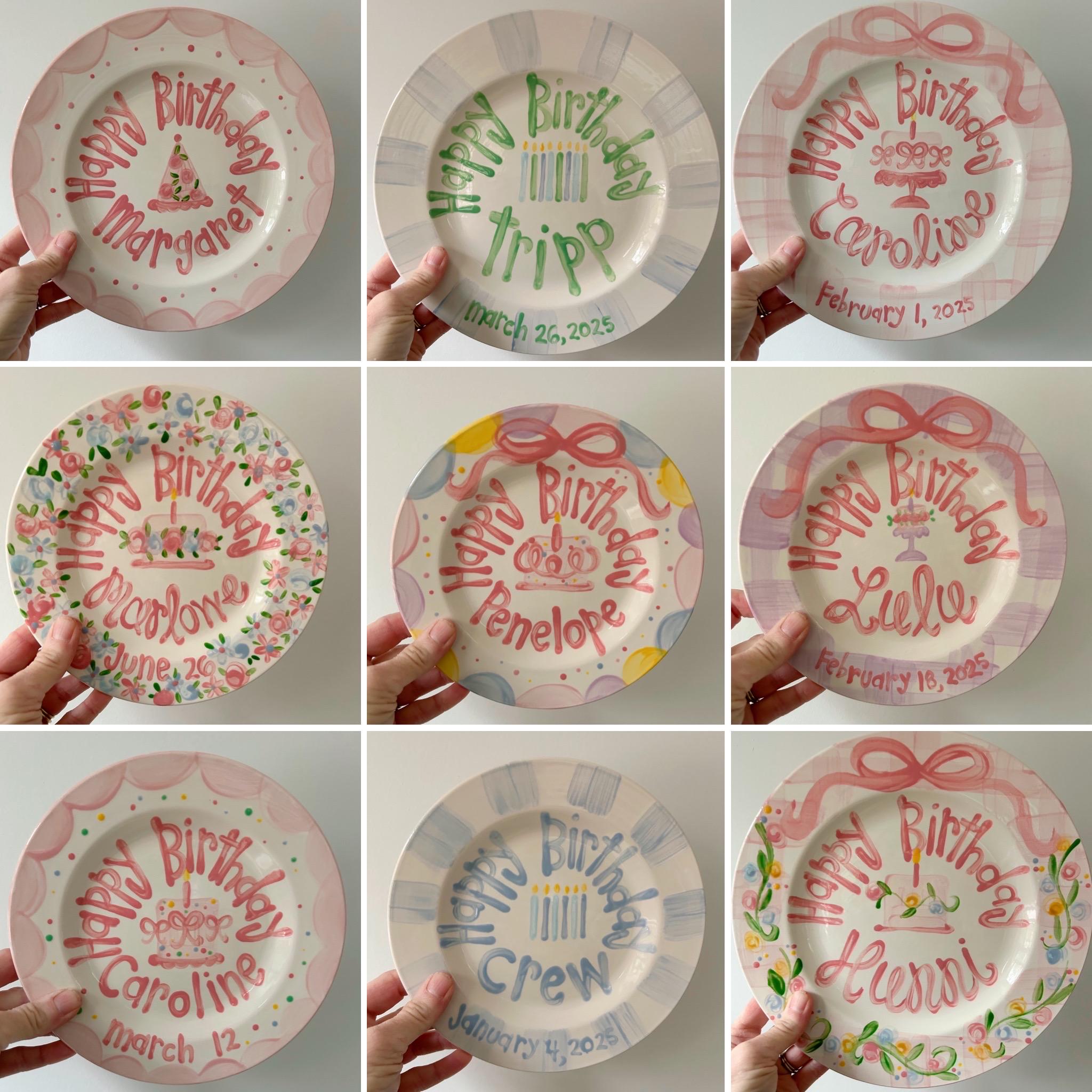 Heirloom quality ceramic kiln-fired birthday plates, tea sets, tea cups & more! All hand-painted, glazed, and kiln fired using professional, non-toxic, lead-free, food-safe paint and glaze, (not craft paints), packed & shipped in my Mississippi home ceramics studio.
